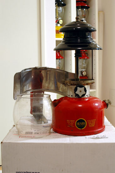で、このランタン、Searsというアメリカのデパートがコールマンに作らせていたもので、コールマンのロゴやタグはない。数もあまり出回っていないらしく、いい状態のモノだったら、日本のヤフオクでは、4万円以上、未使用箱付きだったら6万以上の高値がつく、まさに高嶺の花。ずっと欲しかった一品でした。