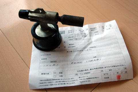 3年ほど使用したし、かつ購入価格も2000円台だったと記憶しているので、もう寿命と諦めてても良かったのですが、年明けに八千代の上州屋Camp-bellに行った時、もし直るのであれば…と修理に出してみた。